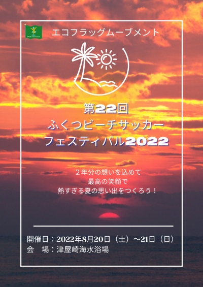 | ■2022/06/18 | エコフラッグムーブメント 第22回ふくつビーチサッカーフェスティバル2022開催決定! |